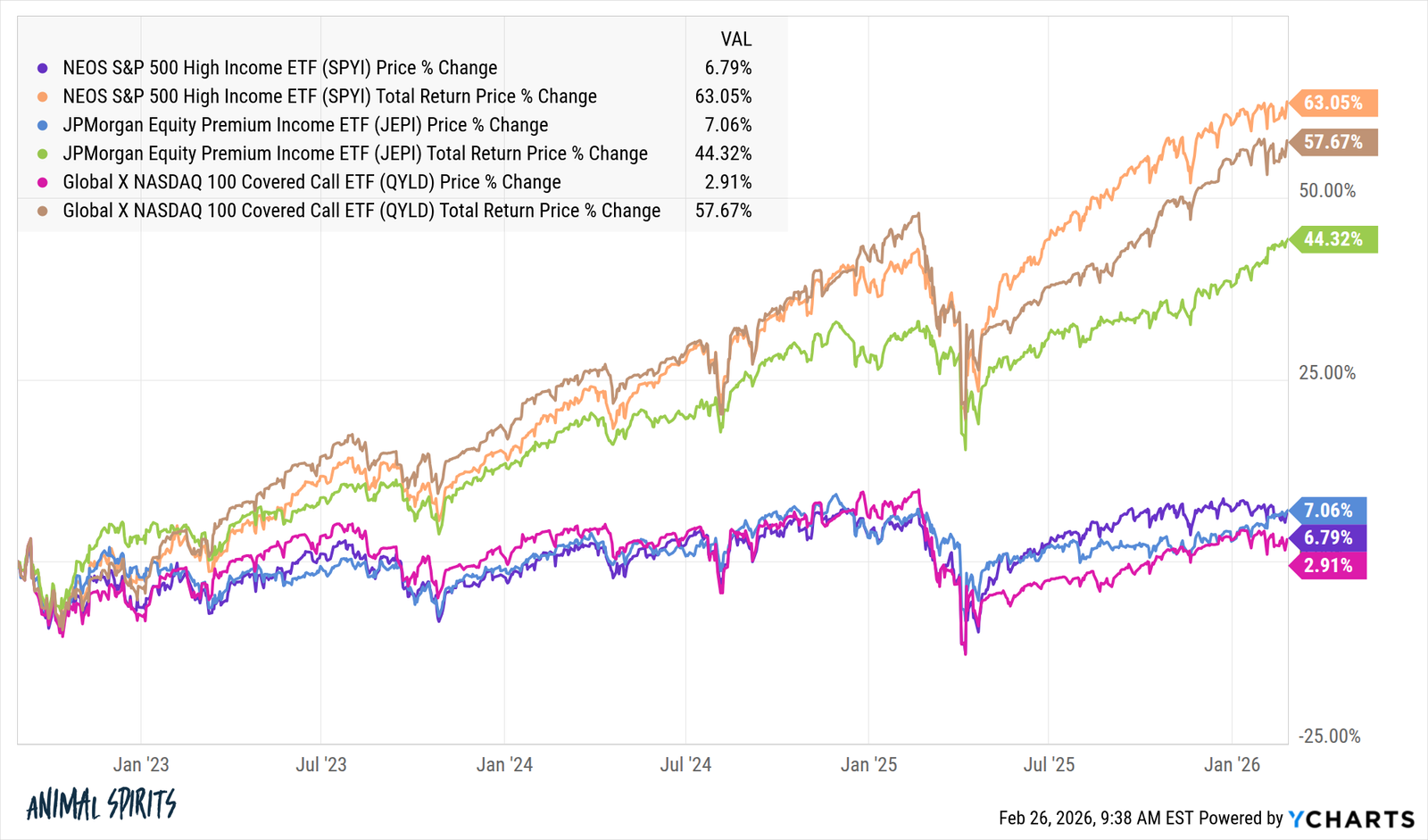 For example, take a look at the difference between price return and total return for a few of the largest call strategies covered: